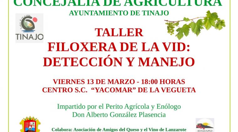 El alcalde de Tinajo, Jesús Machín, y el concejal, Luis Miguel Pérez Berriel, informan a todas aquellas personas interesadas del “Taller filoxera de la vid