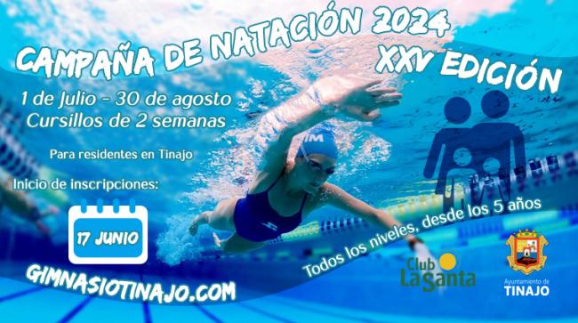 La Concejalía de Deportes del Ayuntamiento de Tinajo, presenta la XXV edición de la Campaña de Actividades Acuáticas y Natación, a desarrollar del 1 de julio al 30 de agosto, con la inestimable colaboración del Club la Santa.