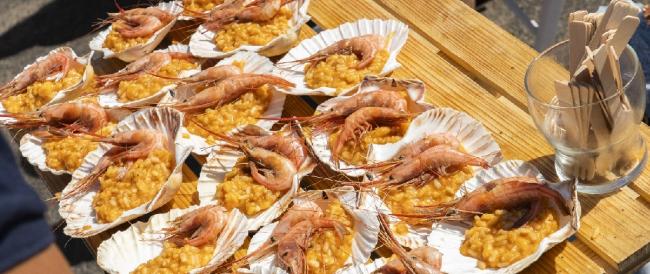 Los productos de Tinajo volvieron a ser los protagonistas absolutos de esta sabrosa experiencia gastronómica. Todo arrancaba con un video de las sesiones de “Sabores de Tinajo” de este año. Los asistentes pudieron degustar opciones culinarias como la “Crema de acelgas y coliflor”, una “Ensalada de tomate y fruta del mercado con vinagreta de miel de Monso”, un “Risotto con queso de Abuelo Machín y gambas de La Santa” y, por último, llegaban el “Cabrito a baja temperatura, reducción de su propio jugo y chips de batata” y, para finalizar, por todo lo alto, el “Helado de gofio sobre torrija de pan de centeno de masa madre y chocolate crujiente”.