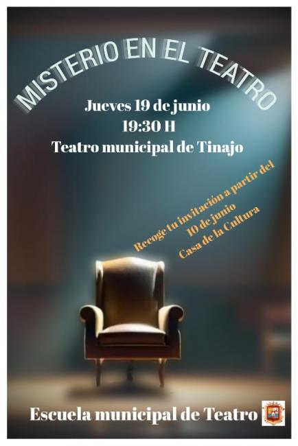 El alcalde de Tinajo, Jesús Machín, y la concejal de Cultura, Yurena Cubas, les invitan a la obra “Misterio en el teatro” que, a cargo de la Escuela Municipal de Teatro, podrá disfrutarse el próximo jueves, 19 de junio, a las 19:30 horas, en el Teatro Municipal.