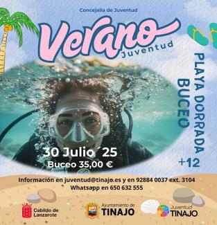 VERANO JUVENTUD TINAJO: BAUTISMO DE BUCEO Seguimos avanzando en las propuestas de verano para los jóvenes del municipio, en esta ocasión nos iremos el 30 de julio