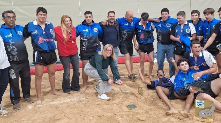 El alcalde de Tinajo, Jesús Machín, y el concejal de Deportes, Vianney Rodríguez, quieren “felicitar al Cadete del Club de Lucha Tinajo tras proclamarse campeones