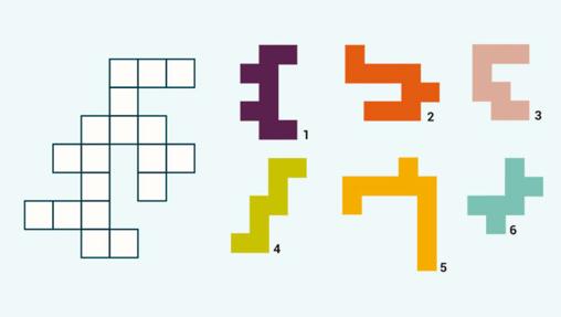 ¿Cuál de las figuras numeradas se pueden superponer en la figura de arriba? No hace falta que se tapen completamente, pero no la pueden sobrepasar