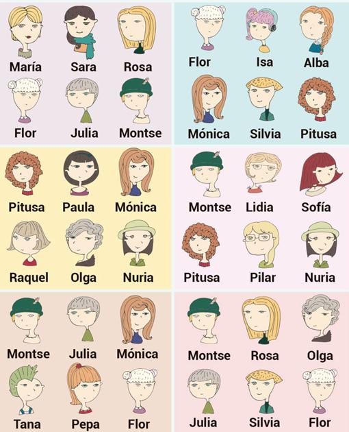 Ayuda a la inspectora a encontrar a tres estafadoras entre todos estos retratos. Tacha todos los nombres que aparezcan más de una vez. Quedará una tarjeta con solo tres nombres tachados. Los otros tres son los que buscas.