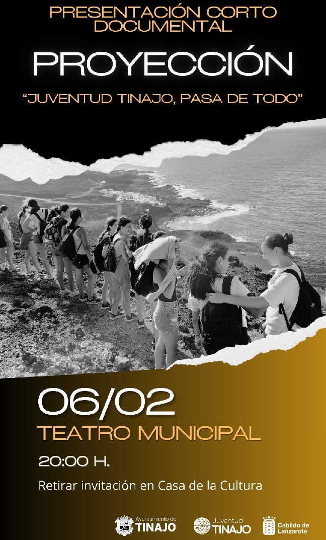 El próximo viernes, 06 de febrero, a las 20:00 h. en el Teatro Municipal de Tinajo, se proyectará el resultado de un proceso en el que se lleva varios meses trabajando. Jóvenes, familias, personal técnico y representantes públicos contarán, de primera mano, lo que es actualmente el proceso de participación juvenil y como se vive desde dentro, testimonios reales que nos conectarán con la realidad juvenil del municipio.
