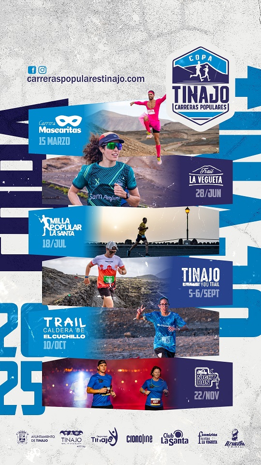 La Copa de Carreras Populares Municipio de Tinajo continúa ofreciendo una propuesta variada que, tras la celebración de todas las pruebas, premiará a los deportistas más regulares y versátiles a lo largo del año. Las seis pruebas que conforman esta octava edición retan a l@s corredores con diferentes opciones en cuanto a distancia y a superficie en las que se compite (principalmente asfalto y pistas de tierra).
