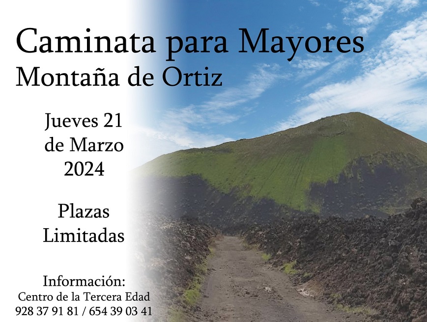 El Área del Mayor del Ayuntamiento de Tinajo organiza la Caminata para mayores Montaña de Ortiz el jueves, 21 de marzo. Plazas limitadas. Más información