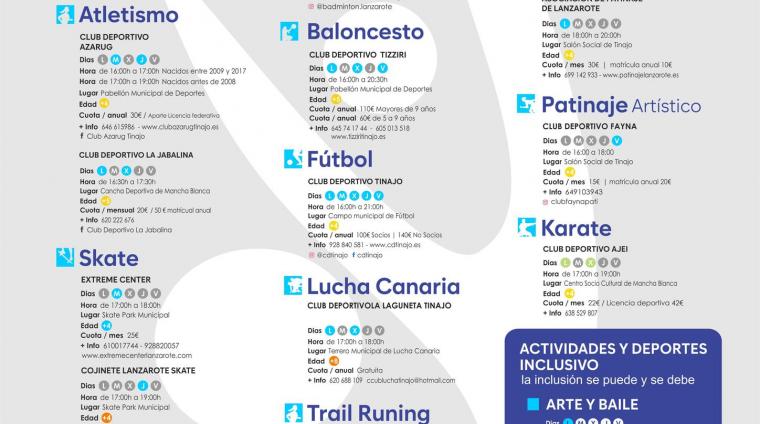 Las Escuelas Deportivas de Tinajo arrancan con récord de modalidades deportivas y deporte inclusivo La Concejalía de Deportes del Ayuntamiento de Tinajo, que dirige el