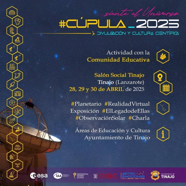 El Ayuntamiento de Tinajo informa que el Salón Social de Tinajo será el escenario, del 28 al 30 de abril, para la comunidad educativa del municipio, y el 1 de mayo para el público en general, de acercarse a las estrellas y el espacio a través de “Astroemociones”.
