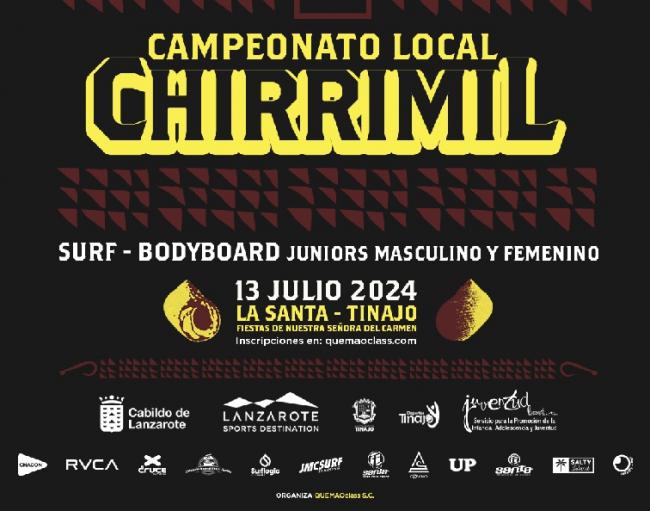 El alcalde y el concejal de Deportes del Ayuntamiento de Tinajo, Jesús Machín y Vianney Rodríguez, respectivamente, les invitan a disfrutar en La Santa el 13 de julio del Campeonato Local Junior de surf y bodyboard CHIRRIMIL.