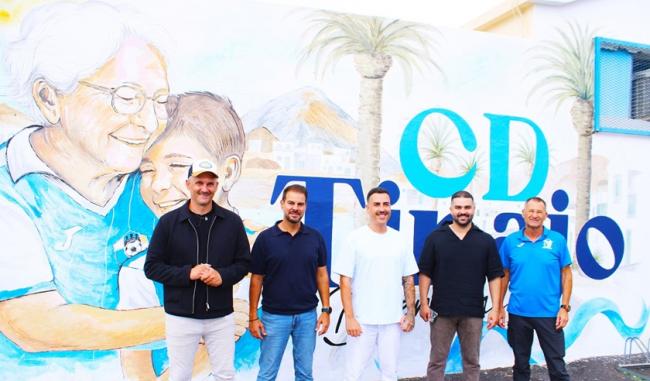 A la presentación del primero de ellos, ubicado en la entrada del campo de futbol municipal, han acudido el concejal de Deportes de Tinajo, Vianney Rodríguez, Miguel Ángel Tejera, presidente del CD Tinajo, el consejero cabildicio, Jesús Machín Tavío y el Director General de Juventud del Gobierno de Canarias, Daniel Morales, institución que ha financiado la creación de los cuatro murales.