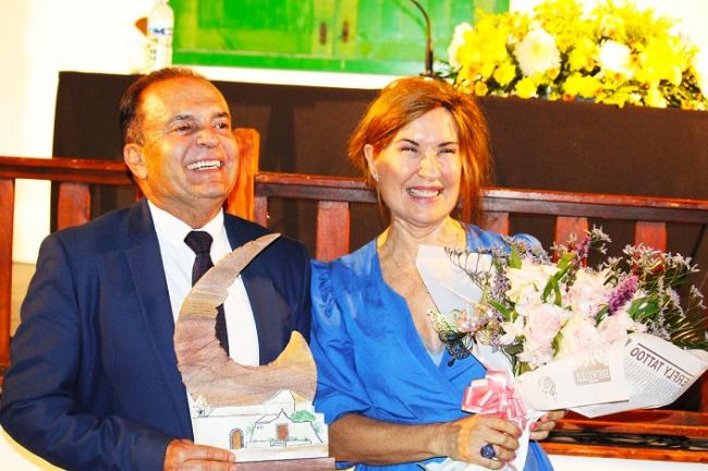 Posteriormente, tomó la palabra el alcalde de Tinajo, Jesús Machín, quien, tras un respetuoso minuto de silencio por un vecino que había fallecido horas antes y recordar la figura de San Roque y sus milagros, dedicaba unas palabras a la sonriente pregonera, a la que agradeció su dedicación y su compromiso verdadero por Tinajo, y terminaba invitando a vecin@s y visitantes a disfrutar de las Fiestas de San Roque que este sábado, en horario vespertino, vivirán la tradicional vendimia. “¡Viva San Roque!”, acababa el alcalde, Jesús Machín, poco antes de entregar un precioso ramo de flores a la orgullosa y emocionada pregonera, Pilar Poza, para, poco después, reunirse en el escenario con toda su familia y sonreir para una foto que recordarán toda su vida.