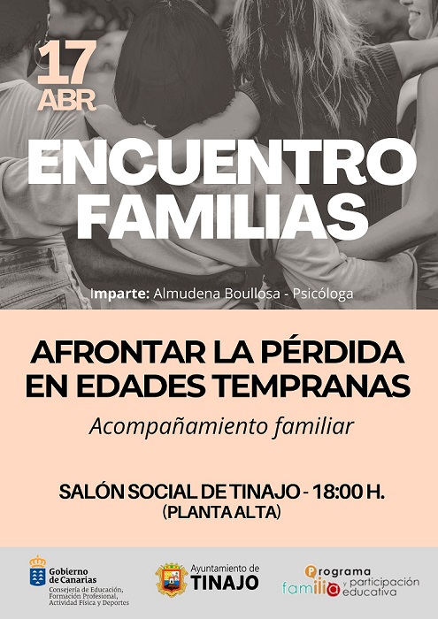 Continuamos con el programa de encuentros en familia, esta vez, la cita será el viernes, 17 de abril, a las 18:00 h. en la parte alta del Salón Social de Tinajo.