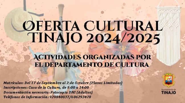 El Departamento de Cultura del Ayuntamiento de Tinajo ha organizado una amplia carta de Actividades Culturales para el presente curso 2024-2025.