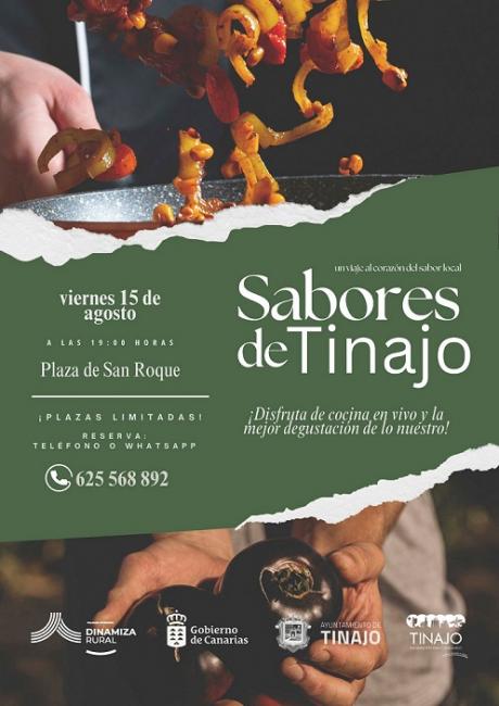 El Ayuntamiento de Tinajo informa que “Sabores de Tinajo” llegará a la Plaza de San Roque el próximo viernes, 15 de agosto, a las 19:00 horas, como una experiencia gastronómica con el objetivo de promover el producto local, iniciativa desarrollada por las concejalías de Comercio y del Sector Primario del Ayuntamiento de Tinajo, y englobada en el programa ‘Dinamiza Rural’ del Gobierno de Canarias y la programación de las Fiestas de San Roque 2025.