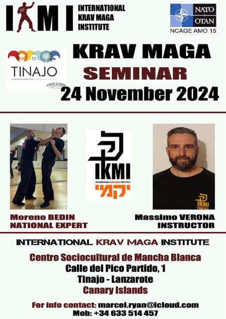 El Ayuntamiento de Tinajo informa sobre el seminario de Krav Maga que tendrá lugar el 24 de noviembre en el Centro Sociocultural de Mancha Blanca y estará a cargo de Moreno Bedín (“National Expert”) y Massimo Verona (Instructor).