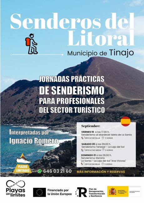 El Ayuntamiento de Tinajo informa sobre “Senderos del litoral”, jornadas prácticas de senderismo para profesionales del sector turístico que, interpretadas por Ignacio Romero, se desarrollarán en septiembre en nuestro municipio financiado por la Unión Europea, Plan de Recuperación, Transformación y Resiliencia, la Secretaría de Estado de Turismo y Playas sin límites.