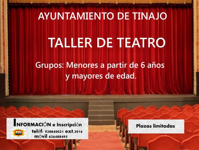 La Concejalía de Cultura del Ayuntamiento de Tinajo que dirige la concejal Yurena Cubas, informa que ya están abiertas las incripciones para participar en el “Taller de Teatro”.