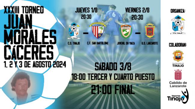 El torneo arrancará el jueves, 1 de agosto, a las 20:30 horas, con el enfrentamiento entre los anfitriones del CD Tinajo y CF San Bartolomé. Para el viernes, 2 de agosto, a la misma hora, queda el choque entre el Juvenil de División de Honor del Unión Sur Yaiza y la UD Lanzarote. El sábado, 3 de agosto, se disputará el partido para el tercer y cuarto puesto a las 18:00 horas, dando paso a la gran final que empezará a las 21:00 horas. El torneo está organizado por el CD Tinajo en colaboración con el Ayuntamiento de Tinajo.