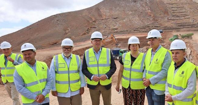 El alcalde de Tinajo, Jesús Machín, junto al concejal de Agricultura de Tinajo, Luis Miguel Pérez Berriel, han acompañado este miércoles a la Secretaria de Estado de Agricultura, Begoña García, y los responsables de la empresa pública Seiasa, Sociedad Mercantil Estatal de Infraestructuras Agrarias, Francisco Rodríguez Mulero, encargada de la ejecución del proyecto, a visitar las obras que se realizan para abastecer de agua desalada con destino al sector agrícola, en concreto pudieron comprobar el estado de las obras de la balsa de Tinache y del depósito de El Cuchillo, ambas actuaciones en el municipio de Tinajo.