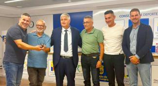 INSIGNIA DE ORO PARA EL CLUD DEPORTIVO TINAJO. El concejal de Deportes de Tinajo, Vianney Rodríguez, ha acompañado en la jornada de hoy a la directiva del CD Tinajo en